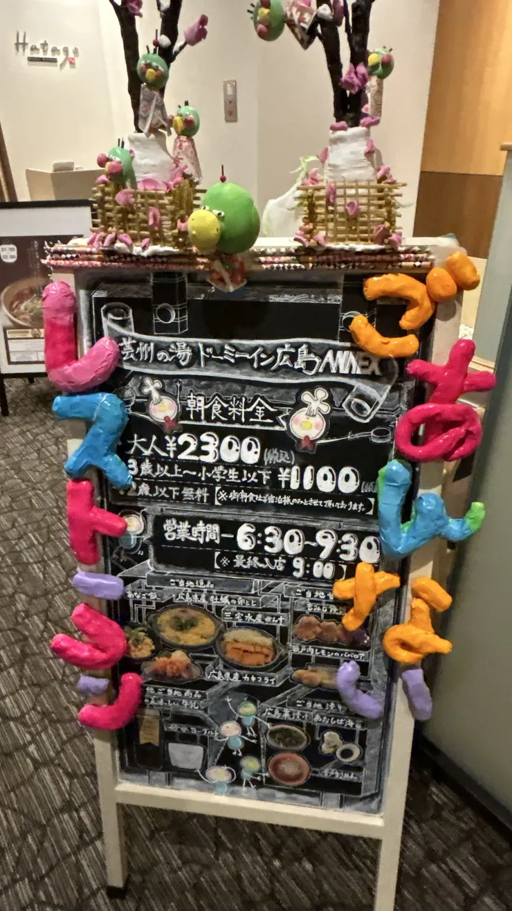 ドーミーインに泊まる時に朝食会場の案内看板をチェックするのが結構好きなのですが、すごい作り込んであって超大作でした!