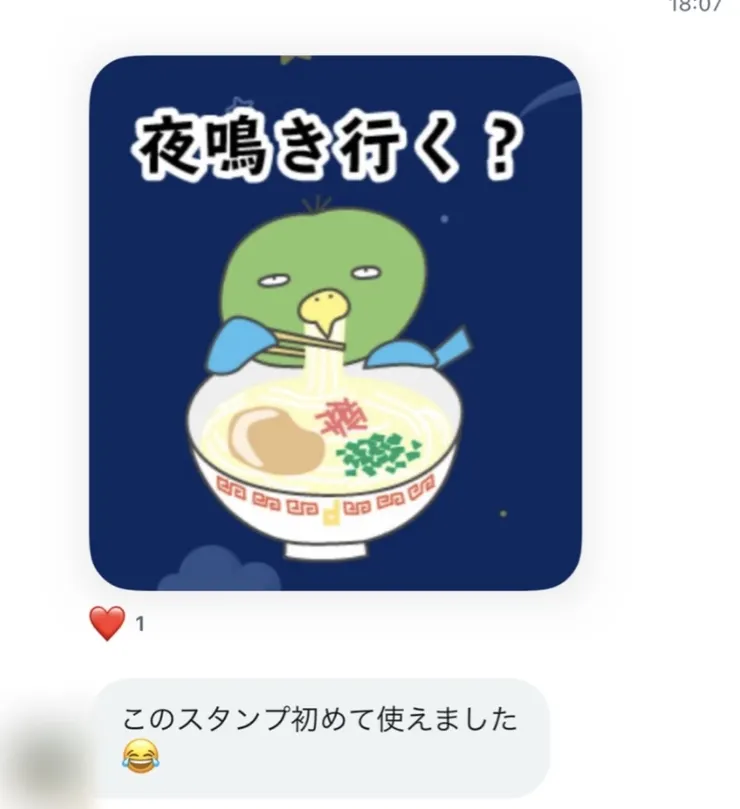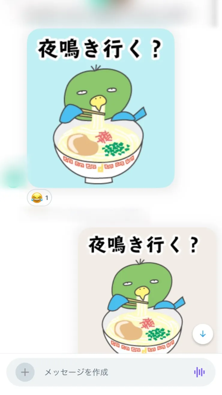 「夜鳴き行く?」のLINEスタンプを初使用👍
