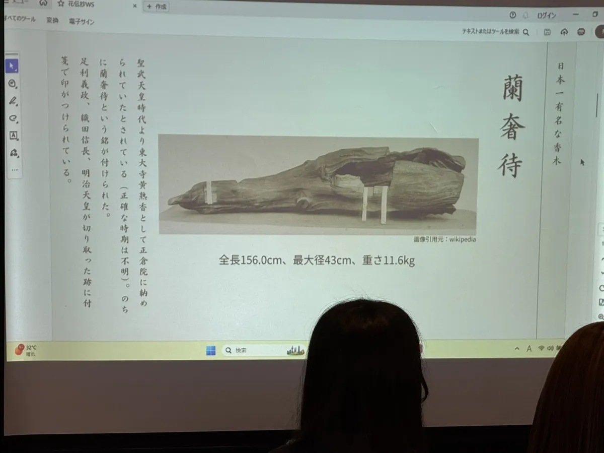 香りの授業の中で、私が特に心に残ったのが、伝説の香木「蘭奢待(らんじゃたい)」のお話です。