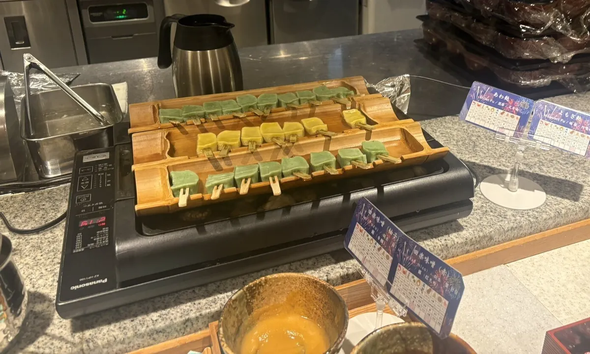 そして、しっとりさせた麩を串に刺して味噌をかけた「よもぎ麩」も絶品……