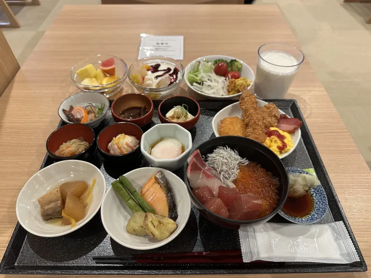 朝食は、海鮮丼やホタルイカ、白エビを使った料理など富山ならではの食材が多く美味しかったです😋