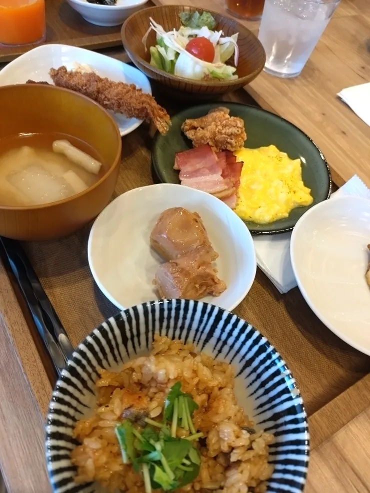 ドーミーイン敦賀2日目の朝食ですが、やはり7時30分頃は混み具合が半端ないですね、それでも稼働率は100 %では、無い位に抑えてありますが、混んでます。本日はベーコンとスクランブルエッグがプレーンオムレツの代わりにありました。ソースカツは少し小さくカットされたものも昨日提案したら置いてありました。