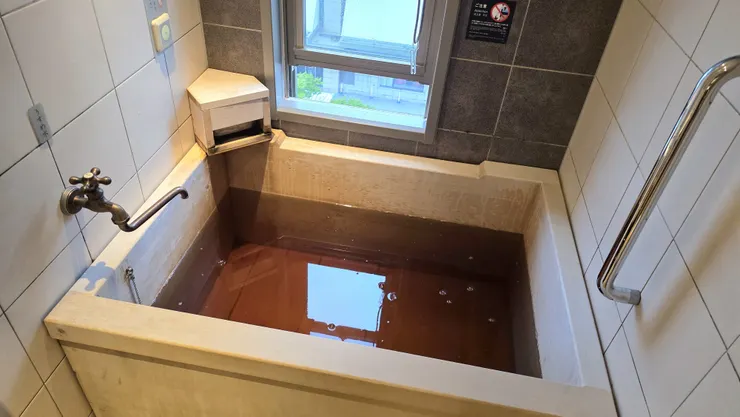 ここはドーミーインでは唯一の客室天然温泉檜風呂ですので、