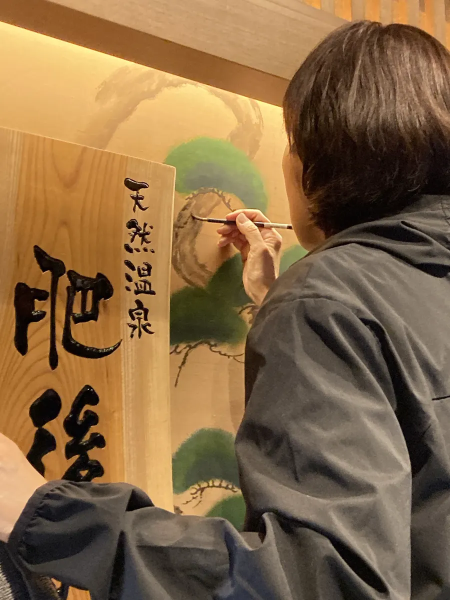 ちょうど「天然温泉 肥後の湯」の看板が取り付けられたところでした。