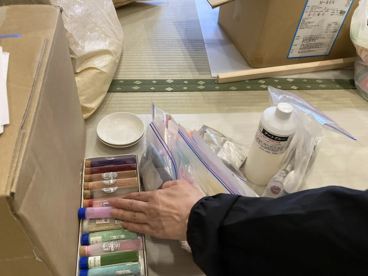 李:こんな感じの「粉」を1つ1つ溶いて色をつくるところからスタートするので、じつは時間も手間も結構かかります。