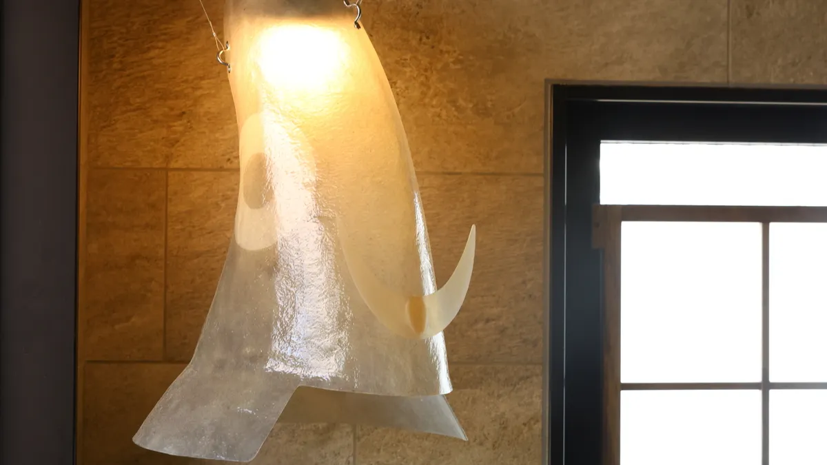 なるほど!加藤清正の「兜」をモチーフにした照明カバーを取り付ける瞬間だったのでした!