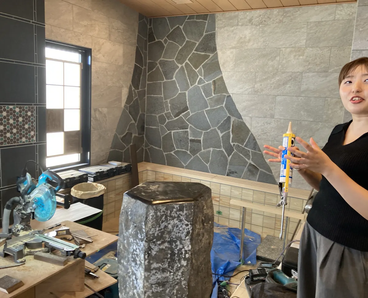 野乃熊本 大浴場フロアも、李惠さん、そして松鵜棟梁 率いる(通称)大工さんチームの皆さまの仕事愛とこだわりにより、素敵な癒し空間が出来上がりました! 今回も感謝‼