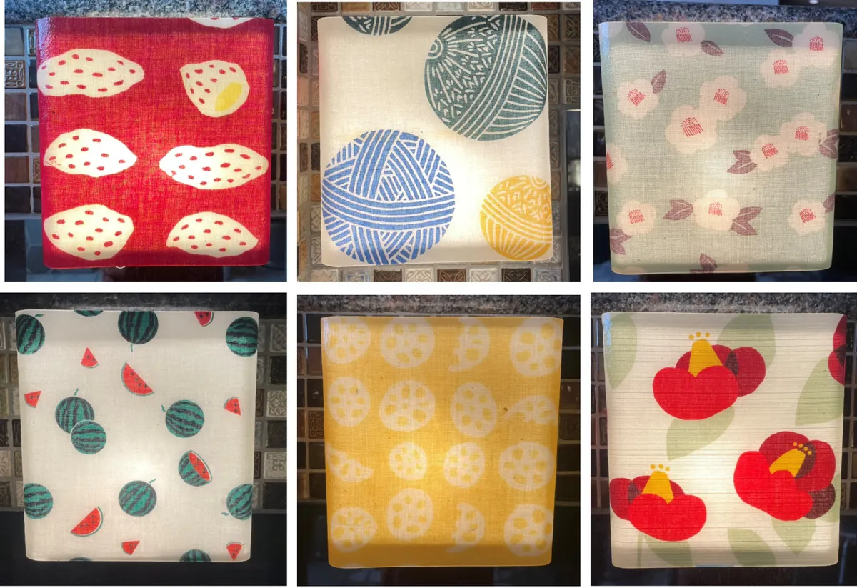 福:ですよね!最近売り出されたばかりの新作タイルなんですよ。肥後手毬風のデザインで、野乃熊本のイメージにぴったりだと思って♪この他、ブラケットカバーや障子なども、肥後手毬、肥後六花、からし蓮根や西瓜など、熊本をイメージできる柄を選んでいます。