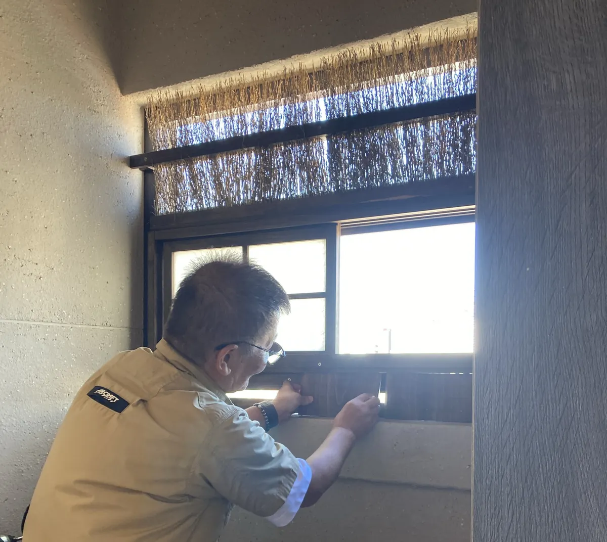 ↑「ヒミツの小窓」の隙間をぴっちりふさぐ松鵜棟梁