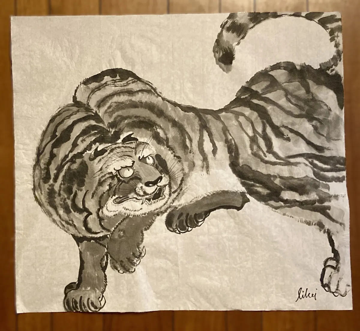 そしてもうひとつ、(李惠さんいわく)練習で描かれた「ほぼ原寸大」の虎も…