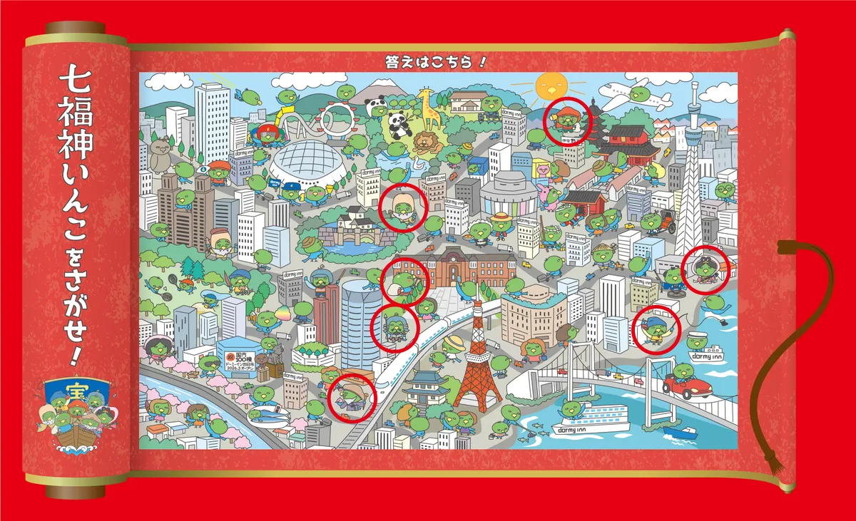 ドーミーイン版<2連>カレンダーに掲載されている「七福神いんこを探せ」の答え合わせをご共有いたします!
