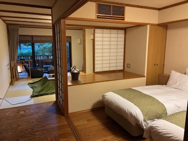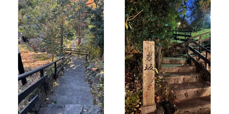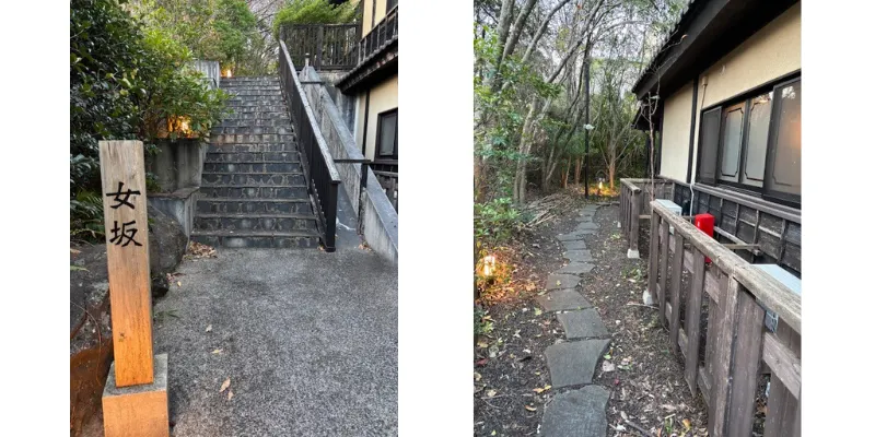 お部屋は「別邸 山の音」導線はエレベーターで3階まで上がり「八幡野」の渡り廊下を…とチェックイン時に案内いただきましたが、今日は天気も良いのであえて「女坂」から向かうことにしました。