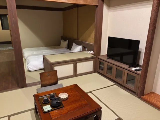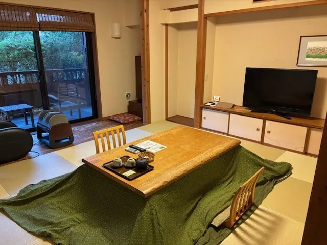 お部屋は広く居間には大きなコタツが!家族で囲むのも十分なスペースがあります👍