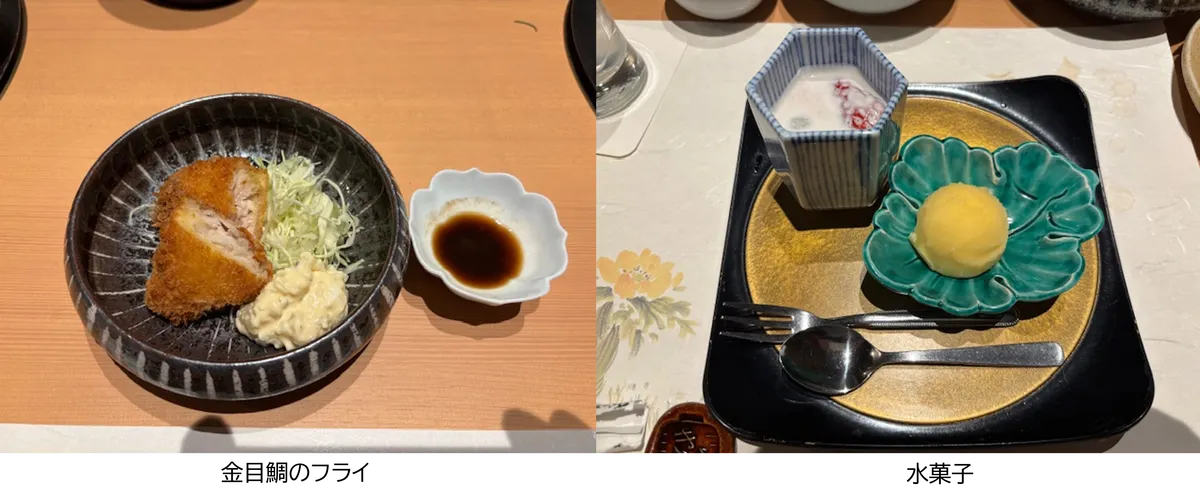 お心ばかりは3品の中から1品選ぶのですが、私は「金目鯛のフライ」を選びました。
