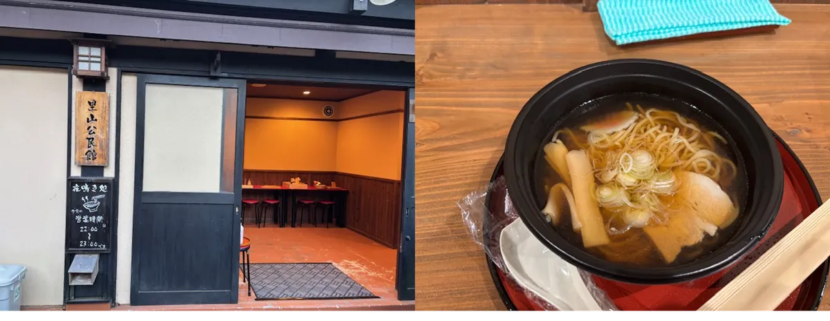 大満足でお食事会場を後にしようとしたところ、スタッフの方から「この後「夜鳴きそば」が里山公民館でご提供されますので是非お召し上がりください。」とご案内が…