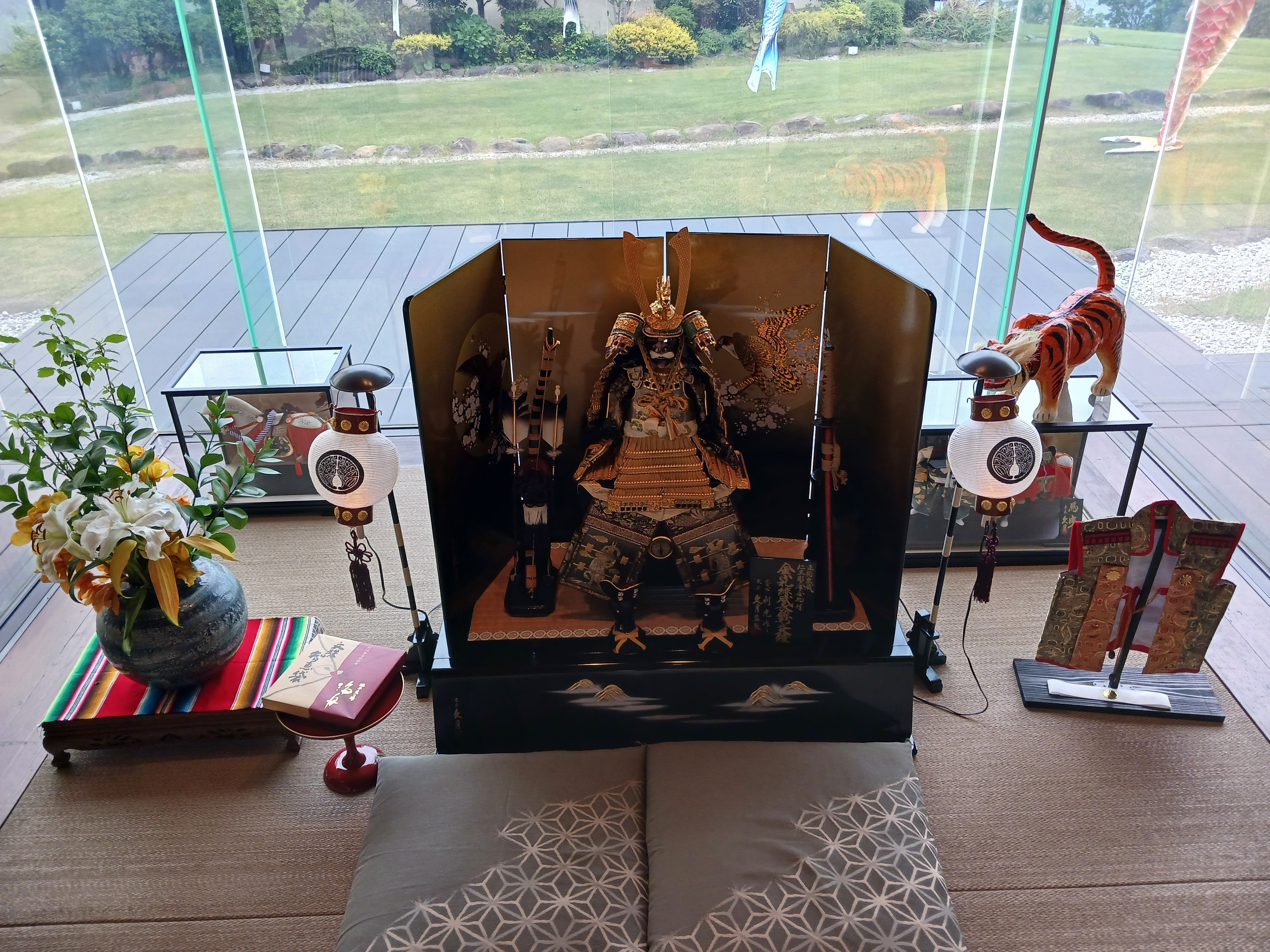 もうすぐこどもの日なので兜ですね♪奥に鯉のぼりも…