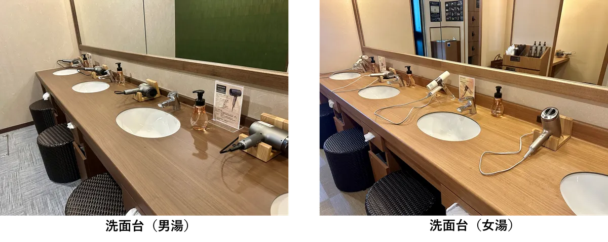 女湯はドライヤーKINUJOもあって、後ろにもメイク台が2箇所あります。