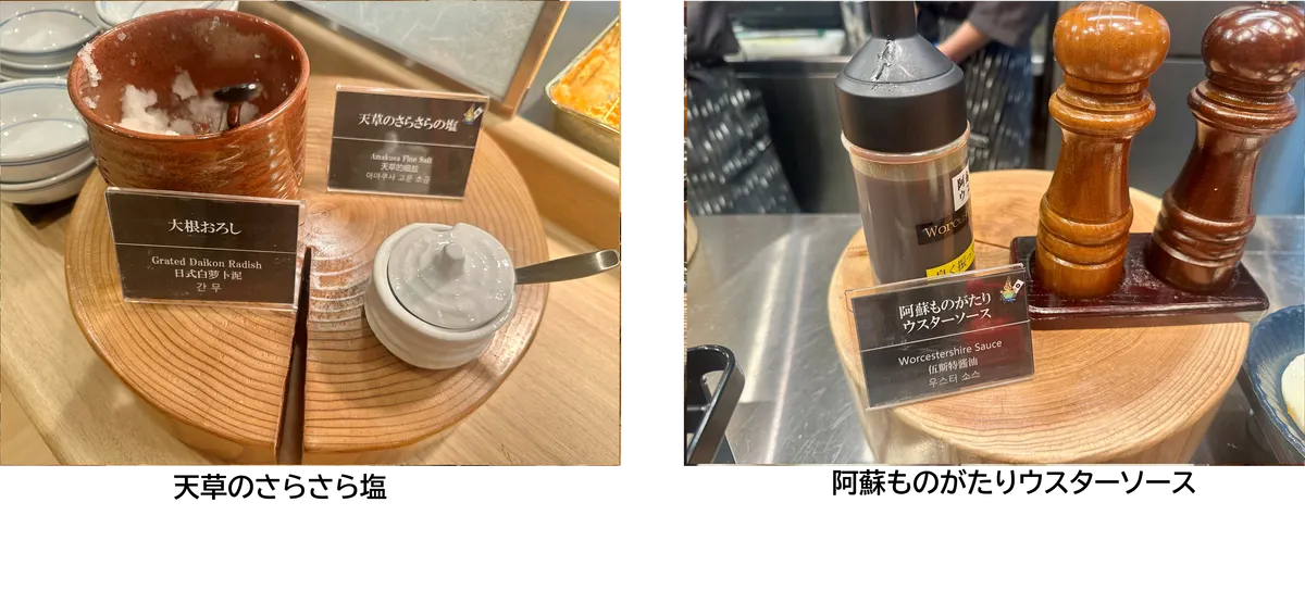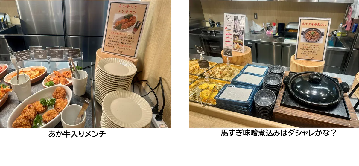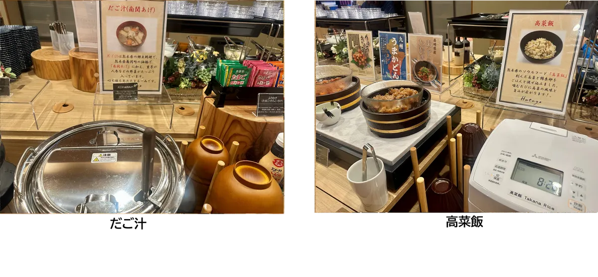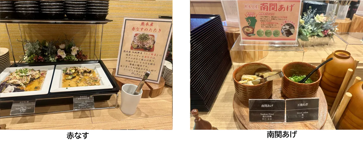 元気納豆、赤なす、南関揚げ(ご当地)、だご汁、高菜飯、あか牛入りメンチカツ、馬すじ味噌煮込み、