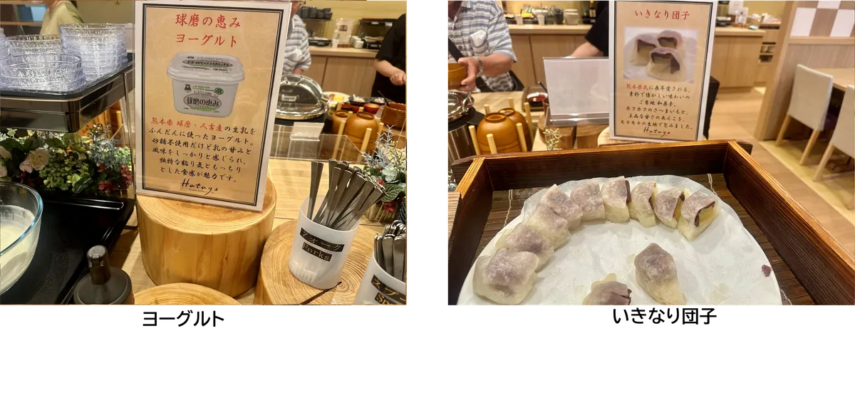 球磨の恵みヨーグルト、さつまいもとあんこが入った熊本名物「いきなり団子」、