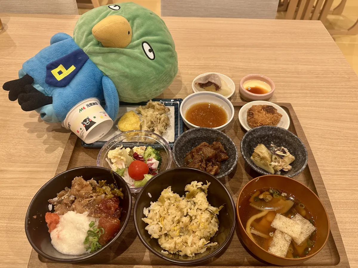 お風呂やサウナや色々と魅力的ですが、短い旅行だと、ご当地のものが食べ切れなかったりもするので、朝食でこれだけ熊本を満喫出来るなんて魅力的すぎます!