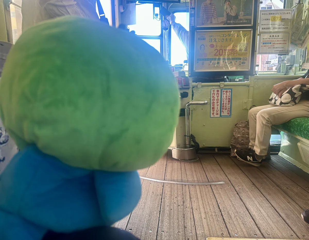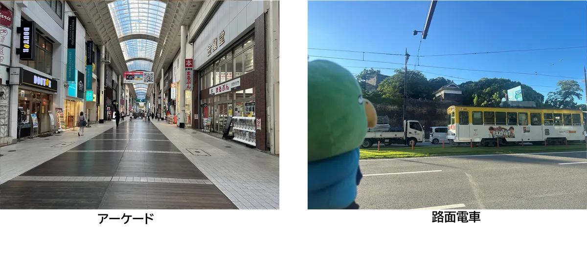 中心エリアのアーケードを歩きつつ、熊本市内を走る路面電車の市電に乗って次の目的地に向かいます。