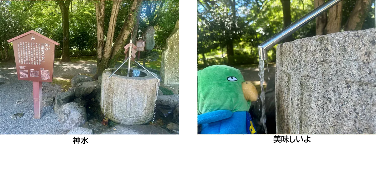 神水「長寿の水」は阿蘇火山系の硬水で飲める水もあります。(冷たくて美味しかった!)
