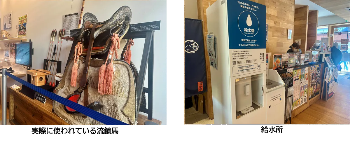 涼しい店内では流鏑馬(やぶさめ)の展示や文化体験や水前寺関連の商品販売も行っているカフェです。