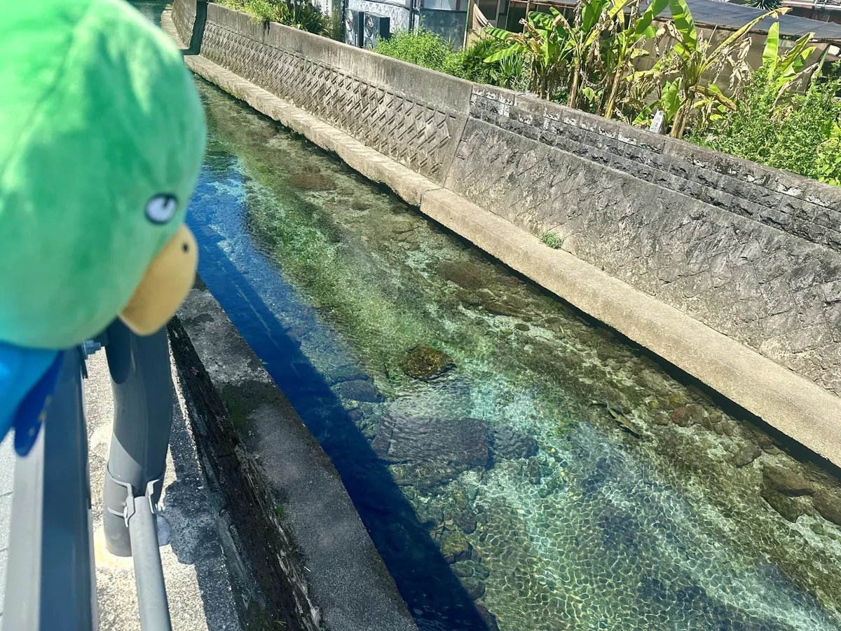 「この水前寺エリアは湧水が有名なので空港行きのバス停に寄る前にぜひ『藻器堀川(しょうけぼりかわ)』を見て帰ってね」と教えてくれたので、通ってみたところ、透き通る水路を発見!