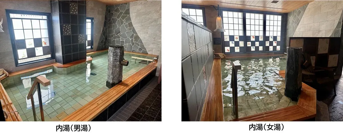 内湯は温泉で、男湯は長方形で、女湯はL字のタイプ。