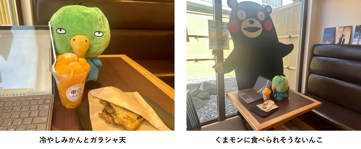 店員さんが「今日は暑いから熊本では有名なみかんを使った冷やしみかんと、水前寺の湧水を利用して栽培した水前寺菜を入れたさつま揚げ『ガラシャ天』がおすすめですよ」と教えてくれたので、早速注文。
