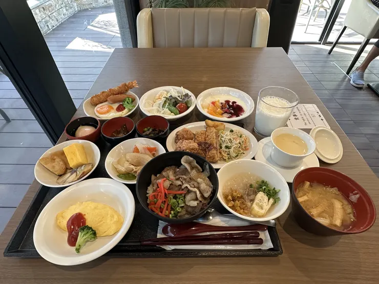 朝食は、はりま牛と淡路島の玉ねぎを使った牛丼、ビーフカツレツ、中華粥、ビーフンなど兵庫ならではの料理が多く美味しかったです😋