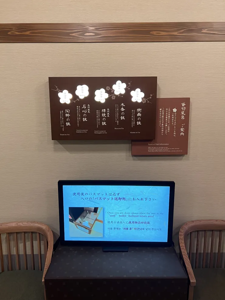 入口のランプで空き状況を確認し、ベンチで順番を待つスタイル。この「選ぶ楽しさ」が旅の満足度を高めてくれる。