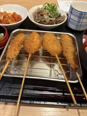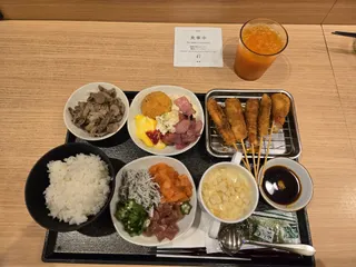 朝から串カツ 野乃なんばの朝食朝から串カツ豪華ですし大阪らしいですね 味の方はもちろん美味かったです。
