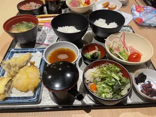 この時期ならでは 朝食で海鮮を食べれるところは多いけれど、牡蠣はなかなか見当たらないカキフライは街中にいけばいくらでもあるけれど、牡蠣の天ぷらとなると、日常でもお目にかかることがない出雲そばに載せることもできるし、ご飯に載せて牡蠣天丼と最高の朝食をいただけますデザートは、出雲ぜんざい・グレープジュースと野乃松江でしか