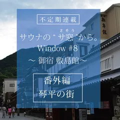 御宿 敷島館の街歩き 敷島館の湯に浸かり、食と館とスタッフさんに癒やされて、ふらっと出かけてみました。おっと、敷島館の玄関横にある足湯。日中は、天然温泉で足を癒やすお客様でいっぱいだそうです。金刀比羅宮の表参道。左側中央あたり敷島館があります。参道には、瀟洒なお店が並んでいて、ちょっと食べては飲んで、見て…そんなことをし