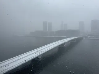 真っ白な東京ベイ いつも夜景が美しいラビスタ東京ベイですが、朝起きたら雪が舞う真っ白な景色❄️しかも朝ごはんが北海道フェアだったので、ちょっとした北の大地気分でした⛄️