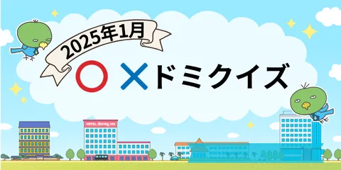【2025年1月】〇×ドミクイズ 島民の皆さま、こんにちは!1月 〇×ドミクイズです。○×ドミクイズの概要はこちら👇【毎月開催】○×ドミクイズキャンペーン開催!!回答期限:2026年1月23日(金)PM12:00までスマホ壁紙プレゼント:1月30日(金)中【第一問】DOMINISTYLE内のドーミーインチェーン【中国・四国エリア】の