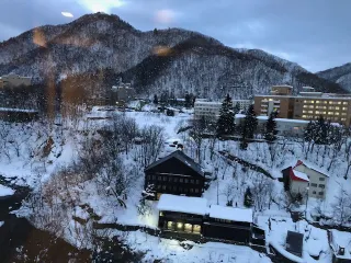 宿の窓から 札幌国際で滑るのに便利です。歳をとるとがつがつ滑れないのと札幌市内まで戻るドライブも大変なのでちょうどよい距離感ですね、ニセコが高騰する中、札幌国際の雪は十分出だと感じてます。